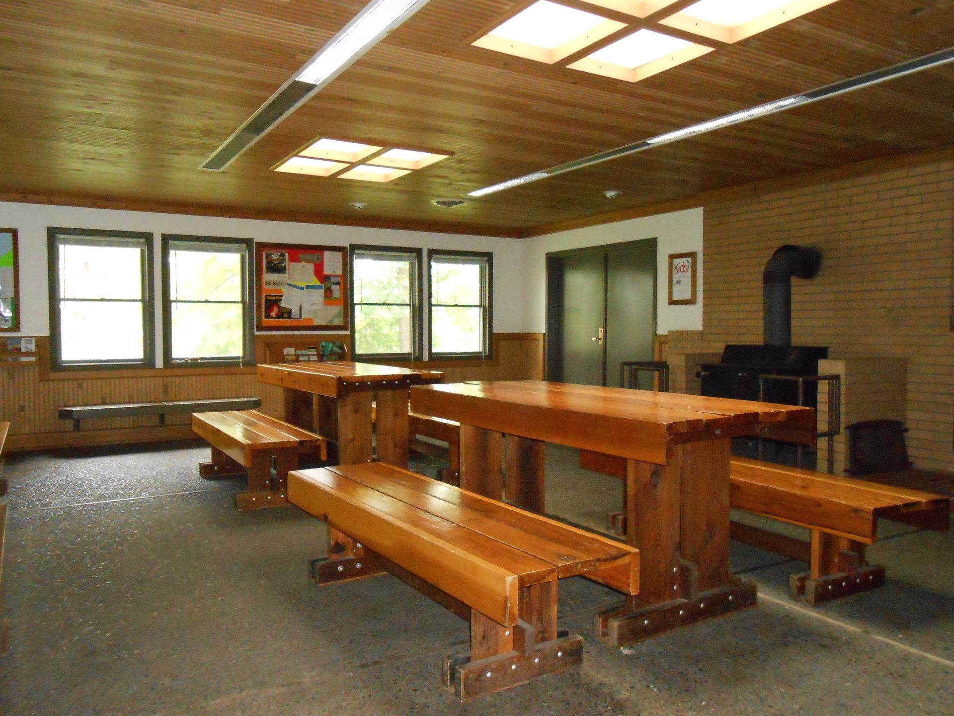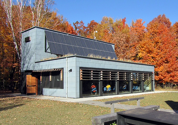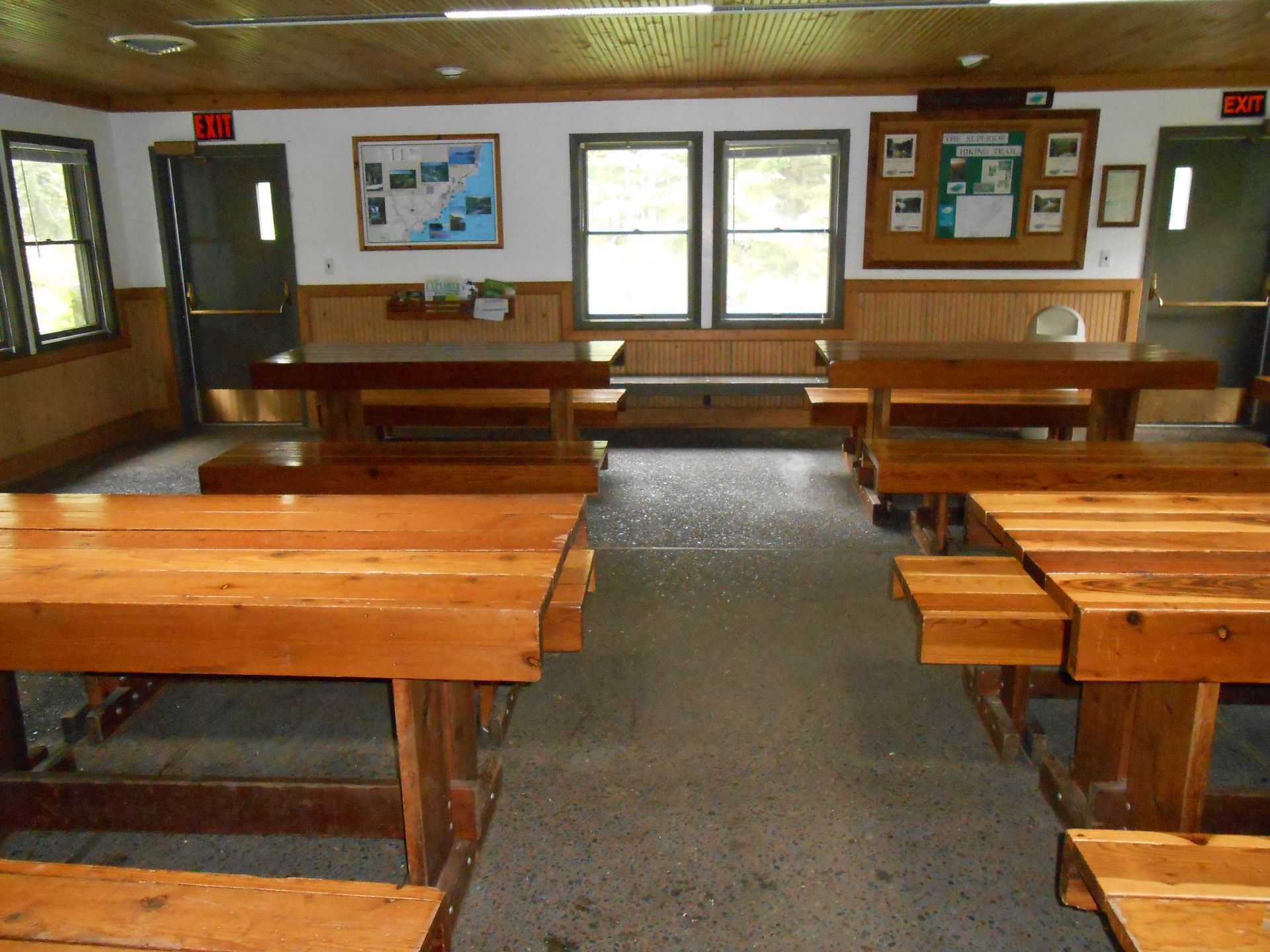 Split Rock Lighthouse Trail Center has no physical barriers from the parking lot to the trail center. The doors to the building have ADA automatic door opener buttons, but the restrooms do not. There is an accessible stall with grab bars in each of the restrooms. Water access in the sinks is push-button, and users have to push down on the hot or cold to initiate water flow. There are no grab bars near the sinks. There are also accessible vault toilets along the hiking trail near the trail center. There is a seasonal accessible portable toilet at