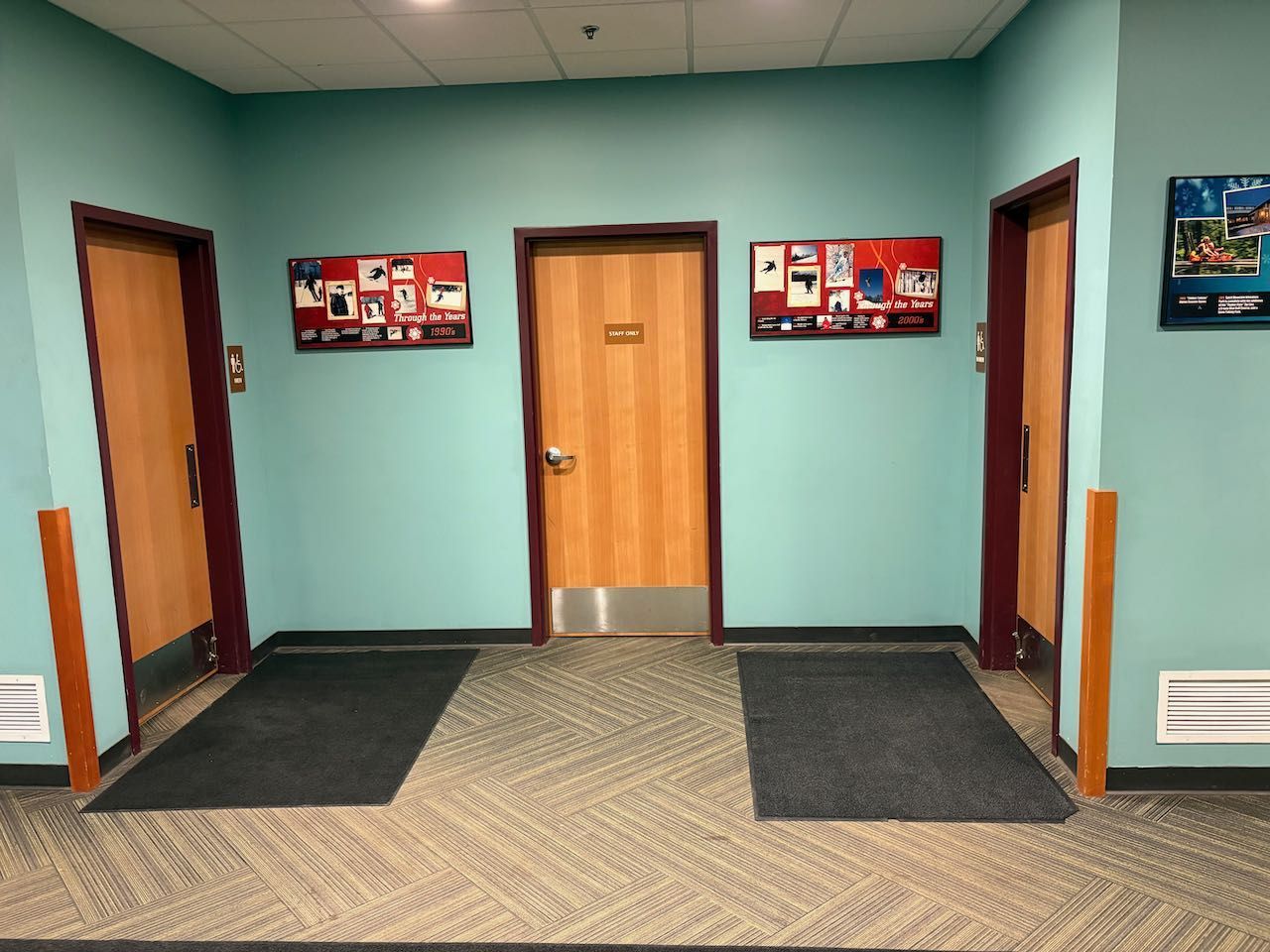 Gooseberry Falls State Park has modern wheelchair accessible restrooms. There are no physical barriers from the parking lot to the visitor center. Doors to the building have ADA automatic door opener buttons. Restrooms have barrier-free entry, lowered sinks, automatic fixtures, grab bars and floor-to-ceiling stalls.