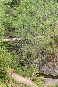 There are accessible paths at each of the falls areas at Pattison State Park. The trail around the waterfalls at Amnicon have steep inclines and declines that should be mostly accessible for a track chair. There are accessible bathrooms (pit toilets) at both Pattison and Amnicon Falls. Accessible transportation is provided if needed. Please make a note when you register under the accessibility needs question.