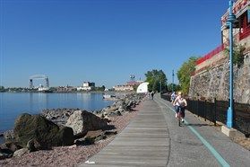 This field workshop along the Lakewalk Trail in Duluth is mostly flat with some rolling terrain. The surface is asphalt the entire route (with some older segments in rough uneven condition) with 2.5 hours of actual riding on the bikes, 6 stops along the way to see different sections of the Lakewalk and different coastal/landscape design features for a total of 12 miles out and back with plenty of stops.