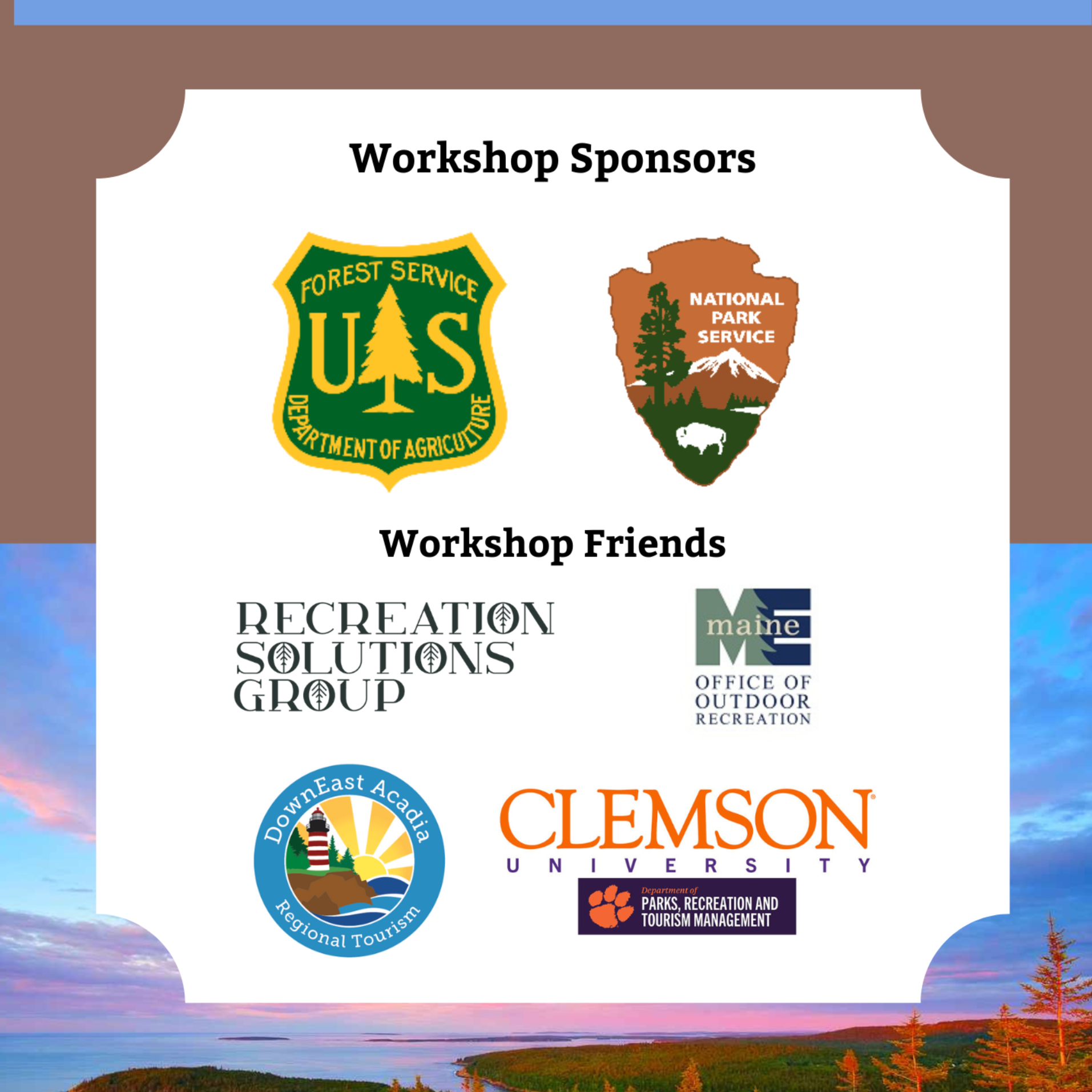 The Society of Outdoor Recreation Professionals (SORP) is hosting a hybrid workshop to share local, state and federal perspectives on visitor use management. Managers in the New England region have a long history of working across jurisdictions to plan for and provide outdoor recreation opportunities so the Maine coast is a great place to gather together to hear case studies and discuss best practices and lessons learned for visitor use management. We're also offering a virtual connection option for those who can't travel for the workshop.